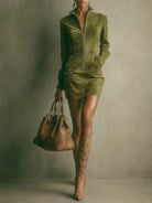 Vivi un'eleganza senza eguali con Bruna, il nostro popolare vestito in pelle scamosciata dal successo straordinario. Progettato per unire comfort con uno stile innegabile, questo lussuoso abito è perfetto per chi apprezza la sofisticatezza in ogni dettaglio.